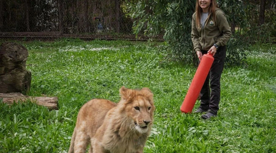 İzmir’de Çiftlikten Kurtarılan Yavru Aslan Yeni Yuvasında